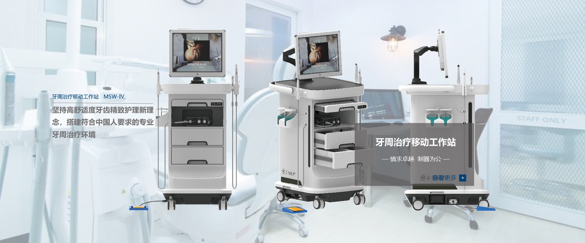 公司致力于磁致伸縮及數字影像技術在口腔醫(yī)療器械領域 的應用,目前擁有3項發(fā)明專利、5項實用新型專利和2項 外觀專利。公司當前主營產品為牙周治療移動工作站,具 體包括磁致伸縮·超聲潔牙機、高清晰度·數字口腔觀察儀 、全向轉動·多功能移動醫(yī)療推車及配套耗材。